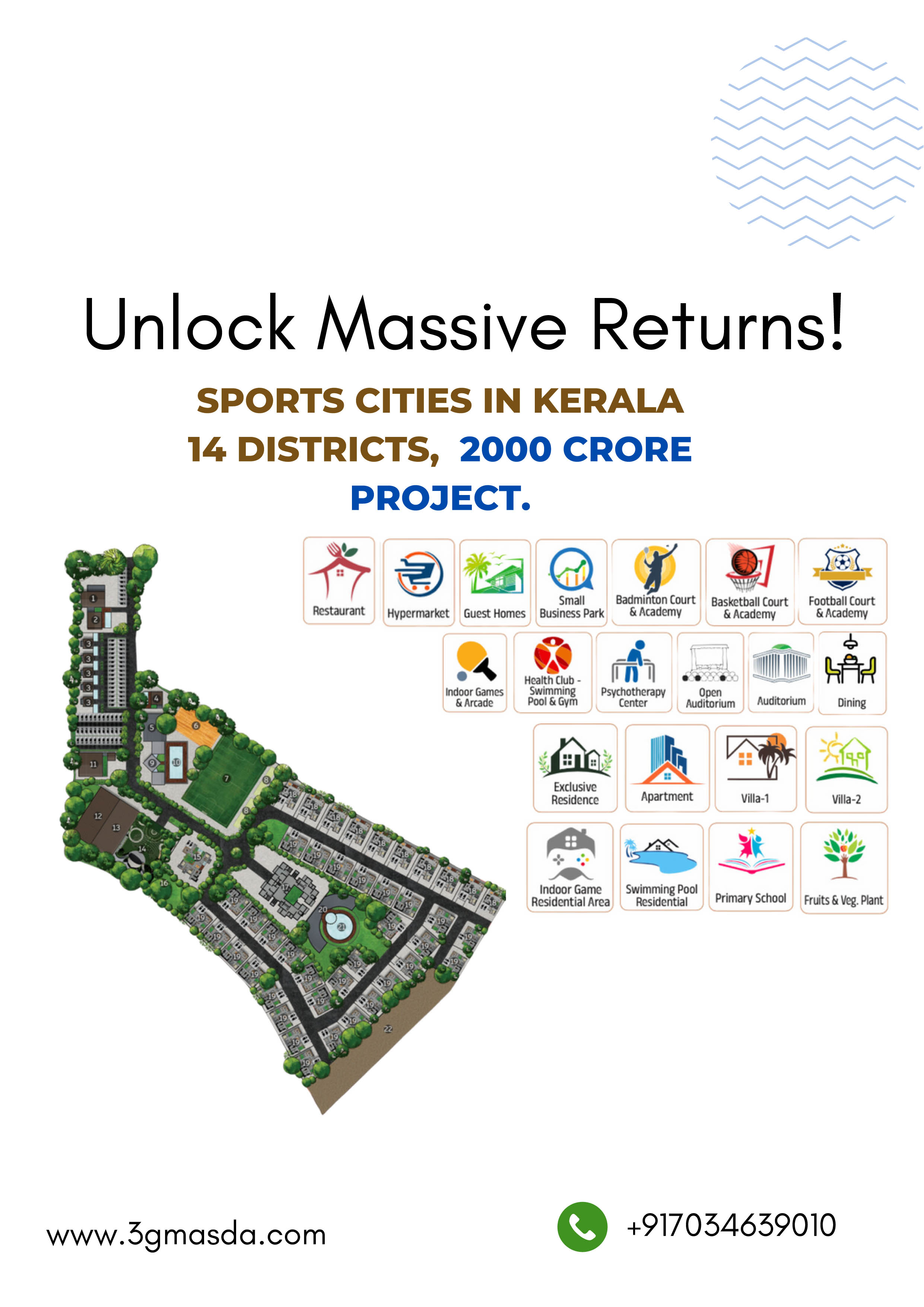 • Sports cities in 14 districts of Kerala